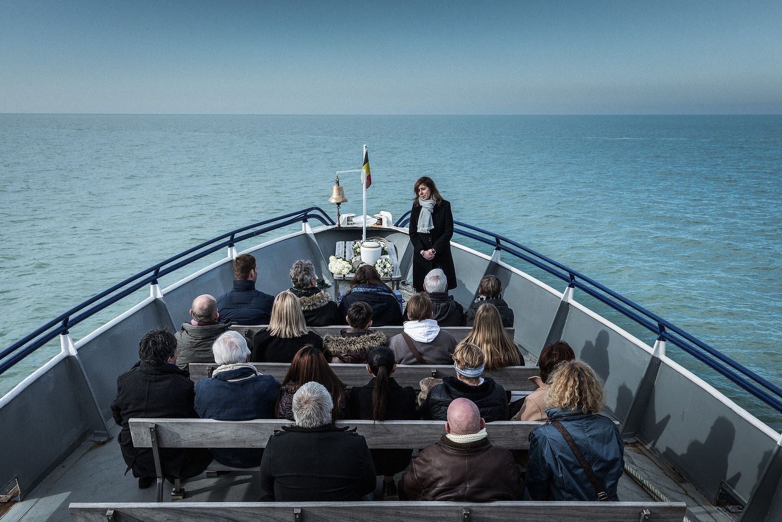 Op de dag van de ceremonie scheept de familie in bij de haven van Oostende. De ceremoniemeester heet iedereen welkom en geeft uitleg over het verloop van de plechtigheid.